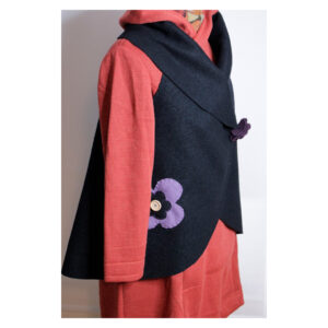 Oversize Weste – Walkloden – Wollweste – mit Applikation – Schwarz / Lila