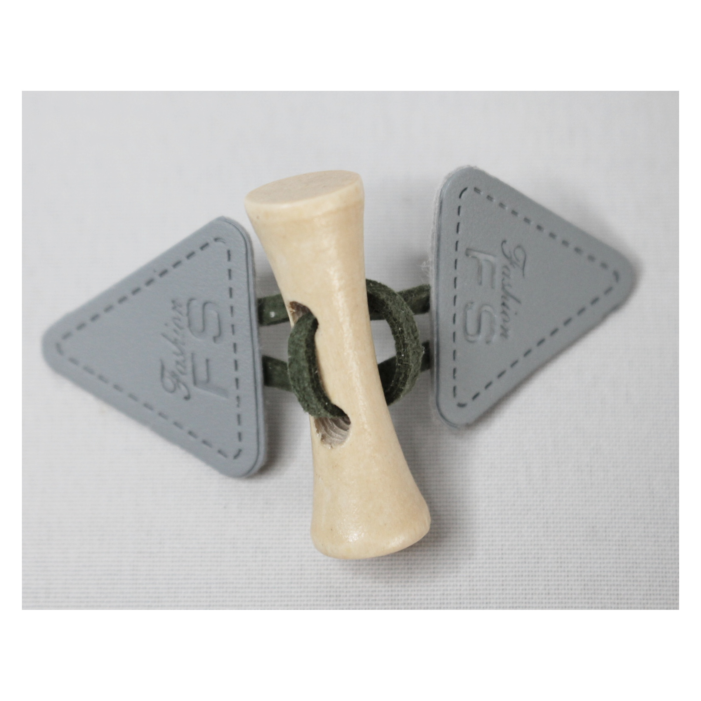 1 Set Knebelverschluß, Knebelknopf, Holzknopf mit Lederimitat, für Kinderkleidung, hellgrau/oliv