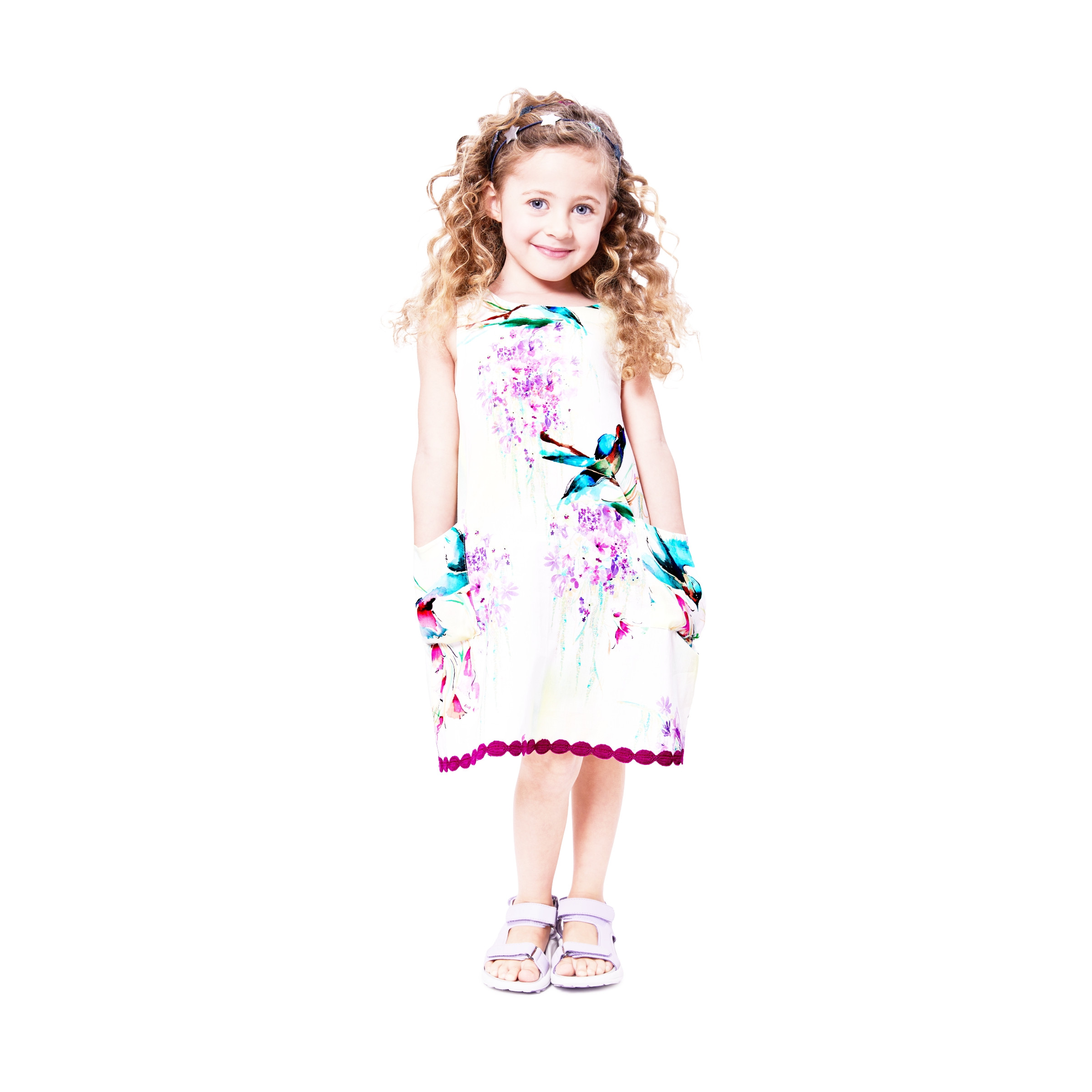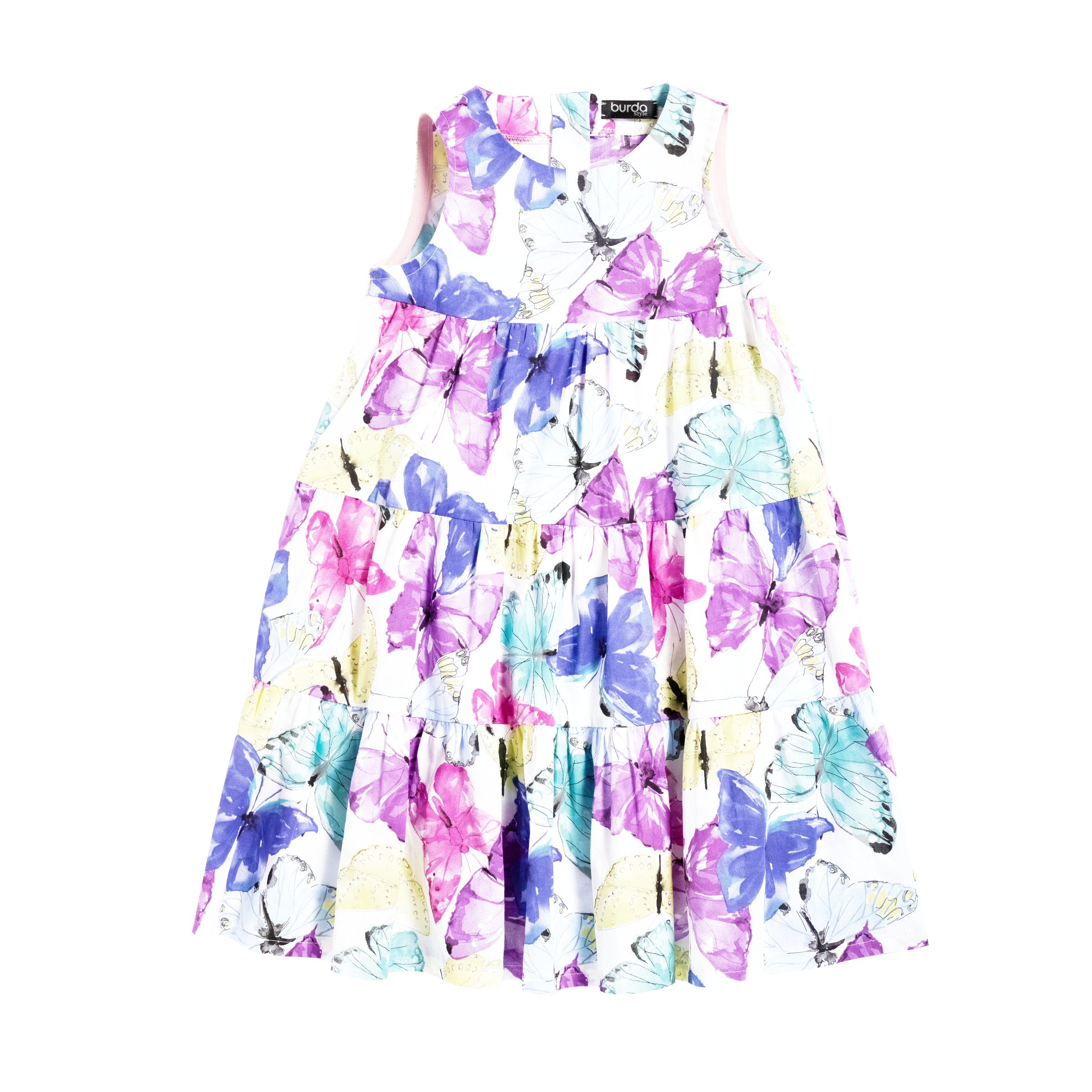 Nähe ein fröhliches Sommerkleid für kleine Modefans – mit dem Burda Kids Schnittmuster 9197.