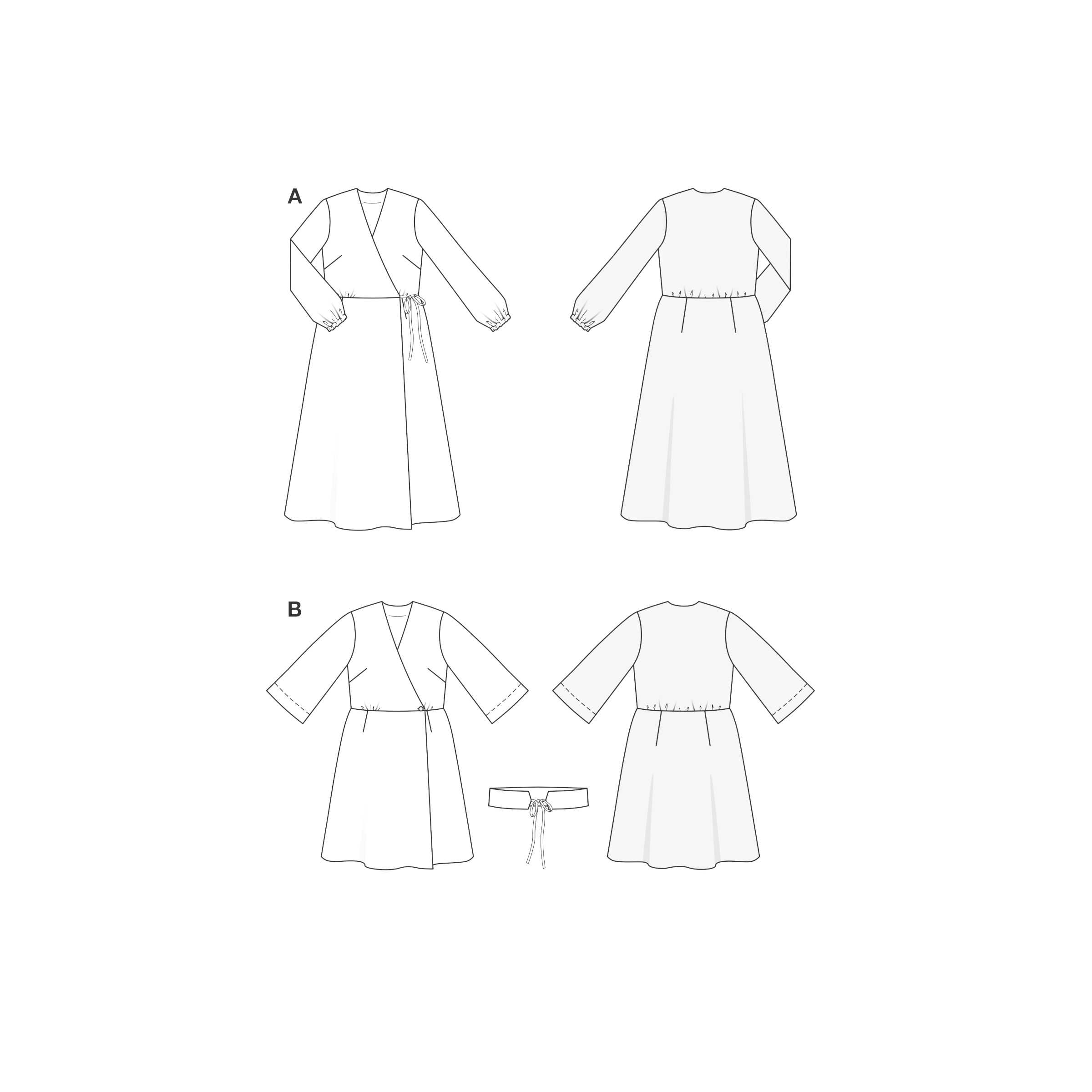 Mit dem Burda Style Schnittmuster 5637 nähst du ein elegantes Wickelkleid mit Gürtel, das durch seine feminine Passform und zeitlose Optik überzeugt. Der Wickelschnitt betont die Taille auf vorteilhafte Weise und sorgt für eine individuell anpassbare Passform, während der Gürtel das Design stilvoll ergänzt.