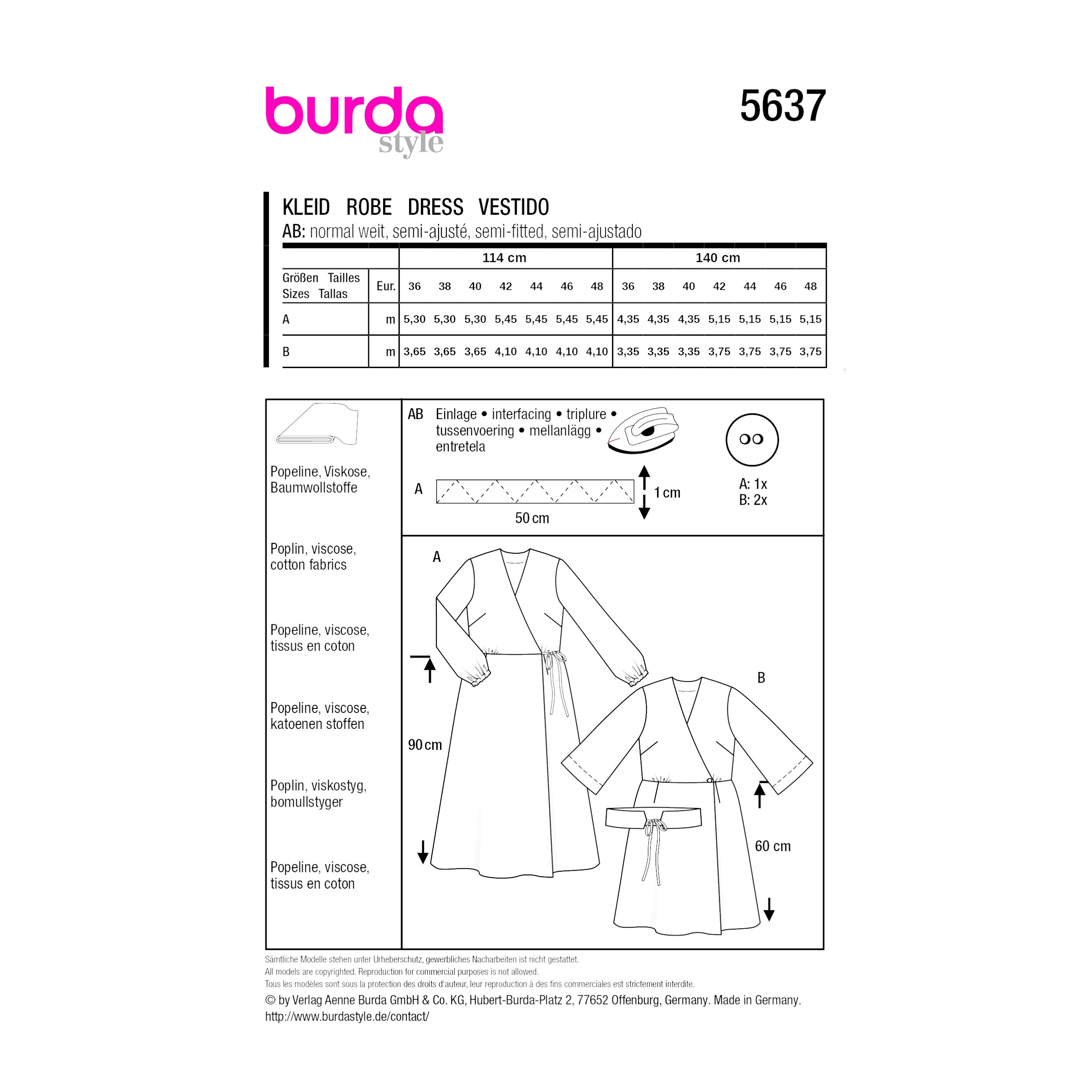 Das Burda Schnittmuster 5637 ist ideal für alle, die ein stilvolles und vielseitiges Wickelkleid selbst nähen möchten.