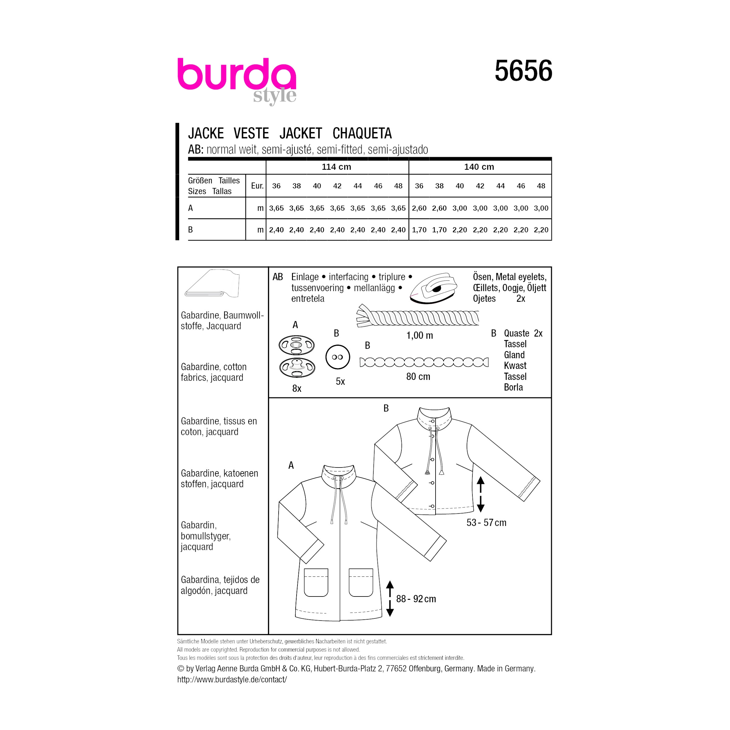 Burda Style Schnittmuster – 5656 – Tunika und Jacke für Damen