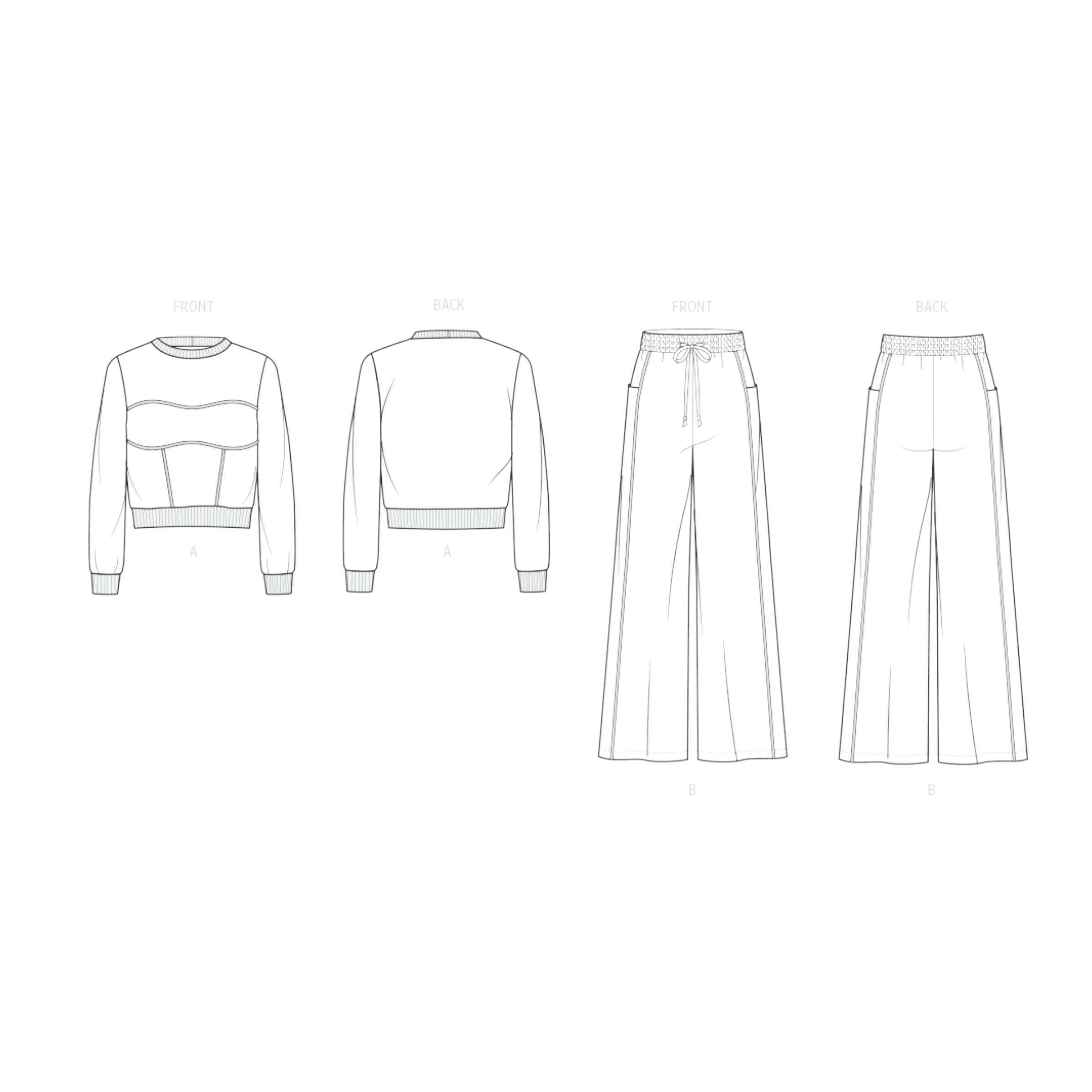 Das Oberteil ist modern geschnitten, locker, unkompliziert und angenehm zu tragen. Die Hose punktet mit einer bequemen Passform und viel Bewegungsfreiheit – ideal für weich fallende Stoffe wie Viskose, Modal, Jersey oder leichte Baumwolle.
