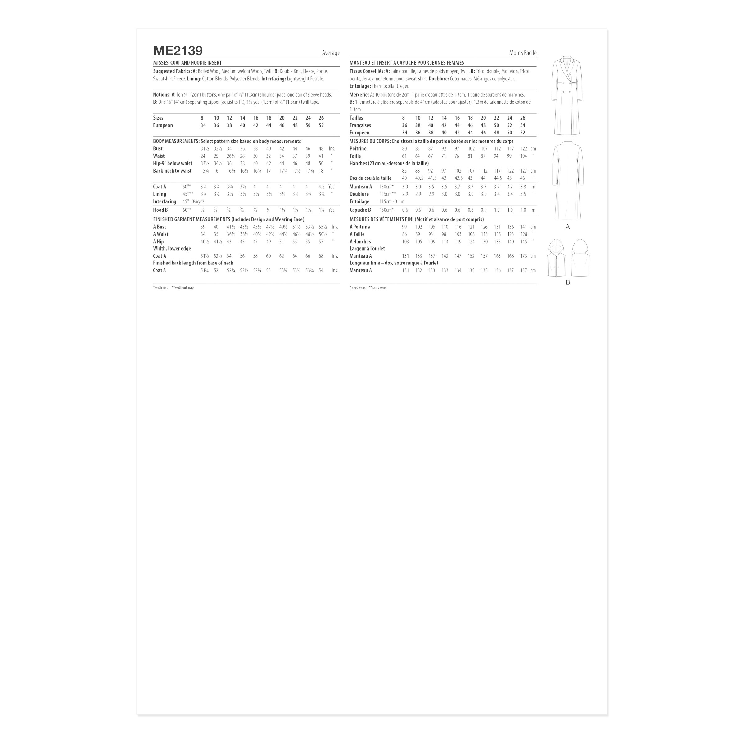 knowME Schnittmuster – ME2139 – Damenmantel und Kapuzenweste
