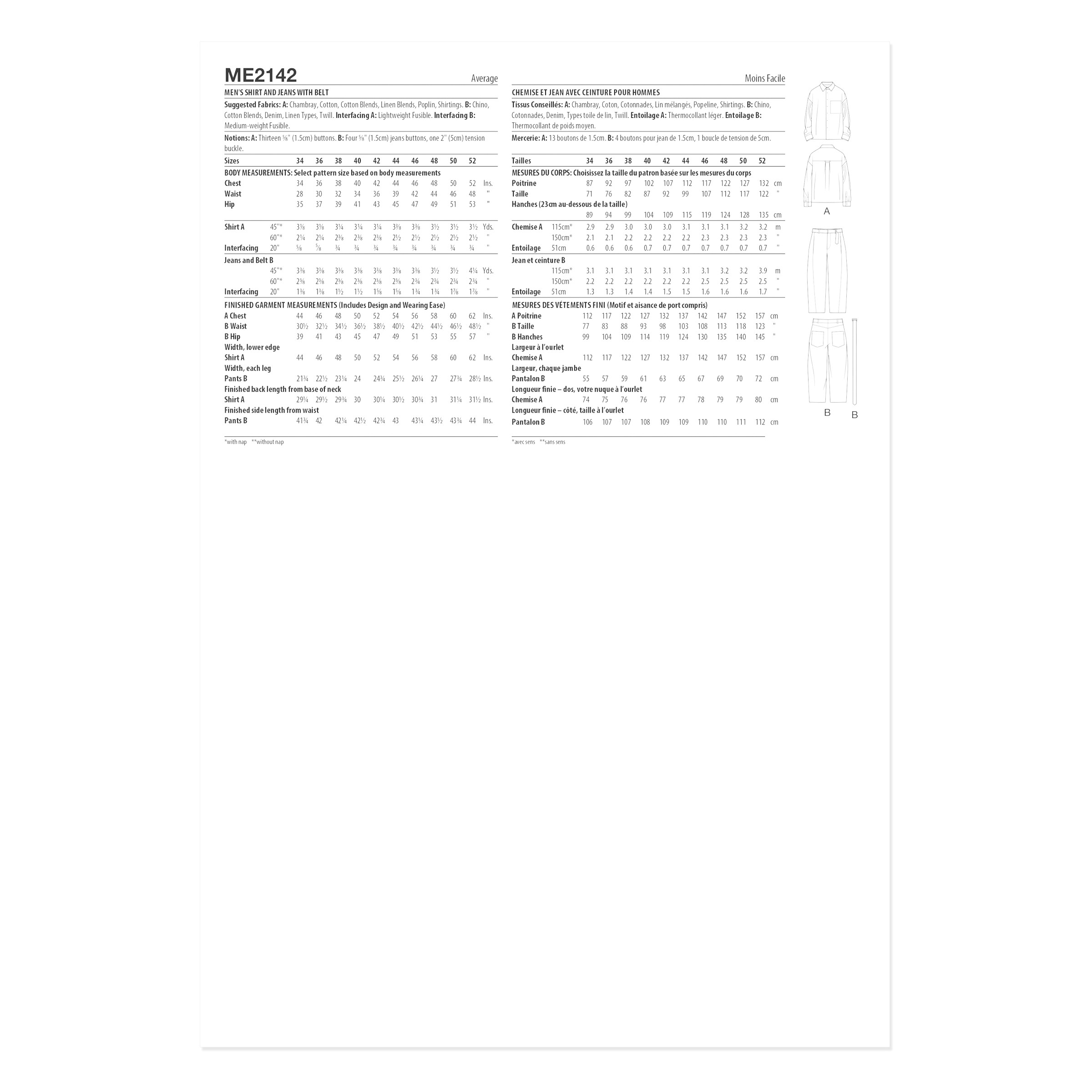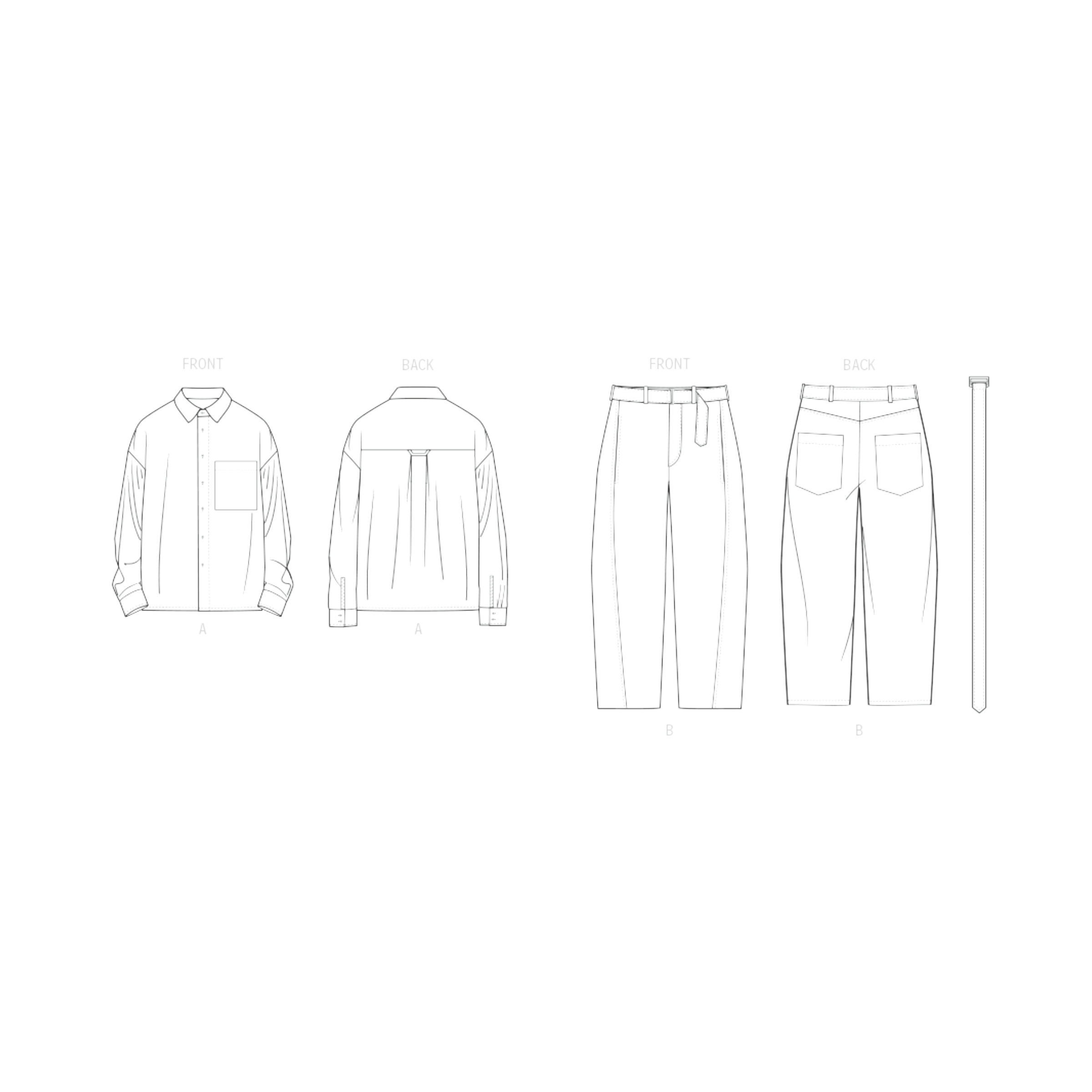 Mit dem knowME Schnittmuster ME2142 erhältst du ein modernes Set für Herrenmode, bestehend aus einer leger geschnittenen Herrenhose und einem klassischen Herrenhemd. Dieses Duo bietet eine ideale Grundlage für stilvolle Freizeit- und Alltagsoutfits – bequem, lässig und dennoch gepflegt.