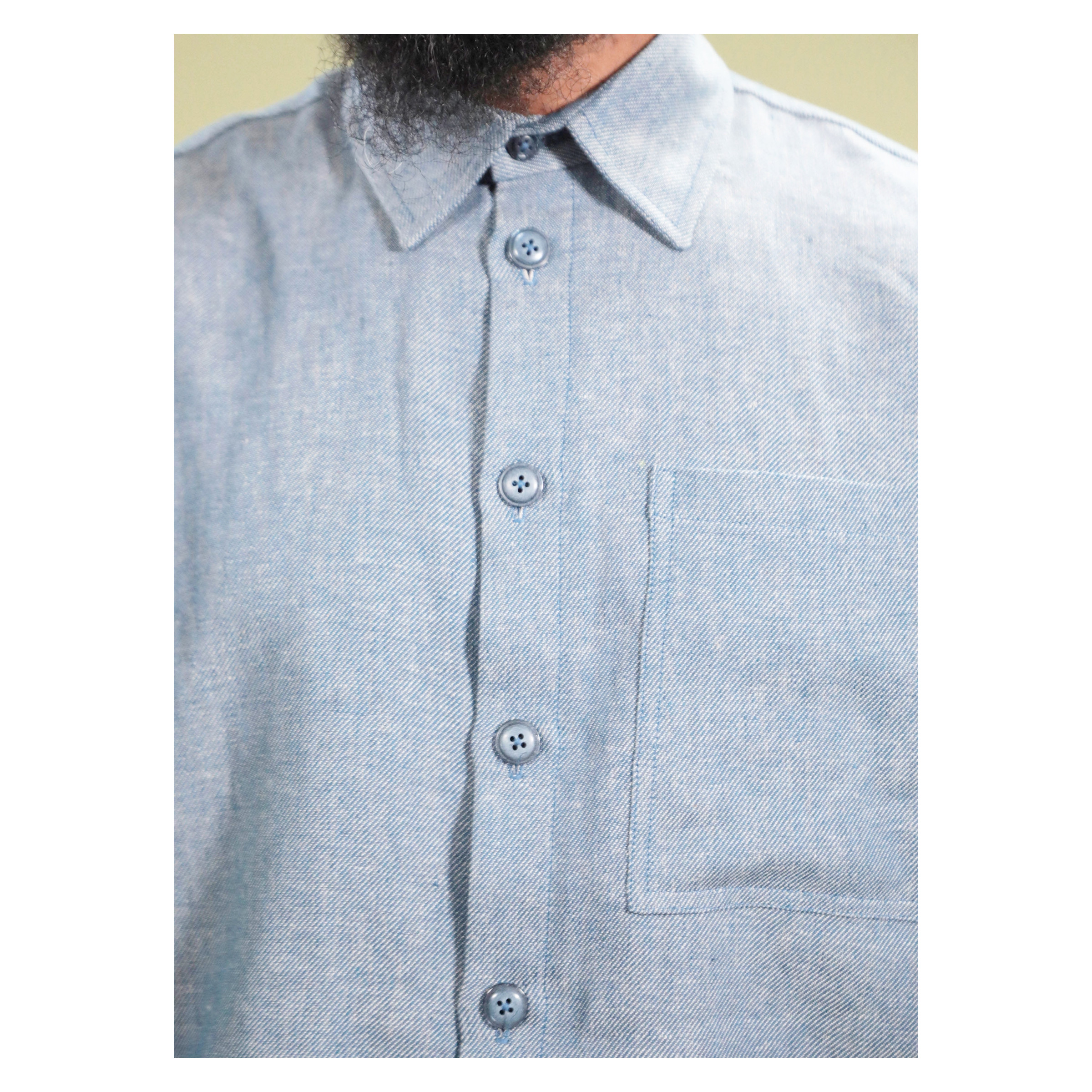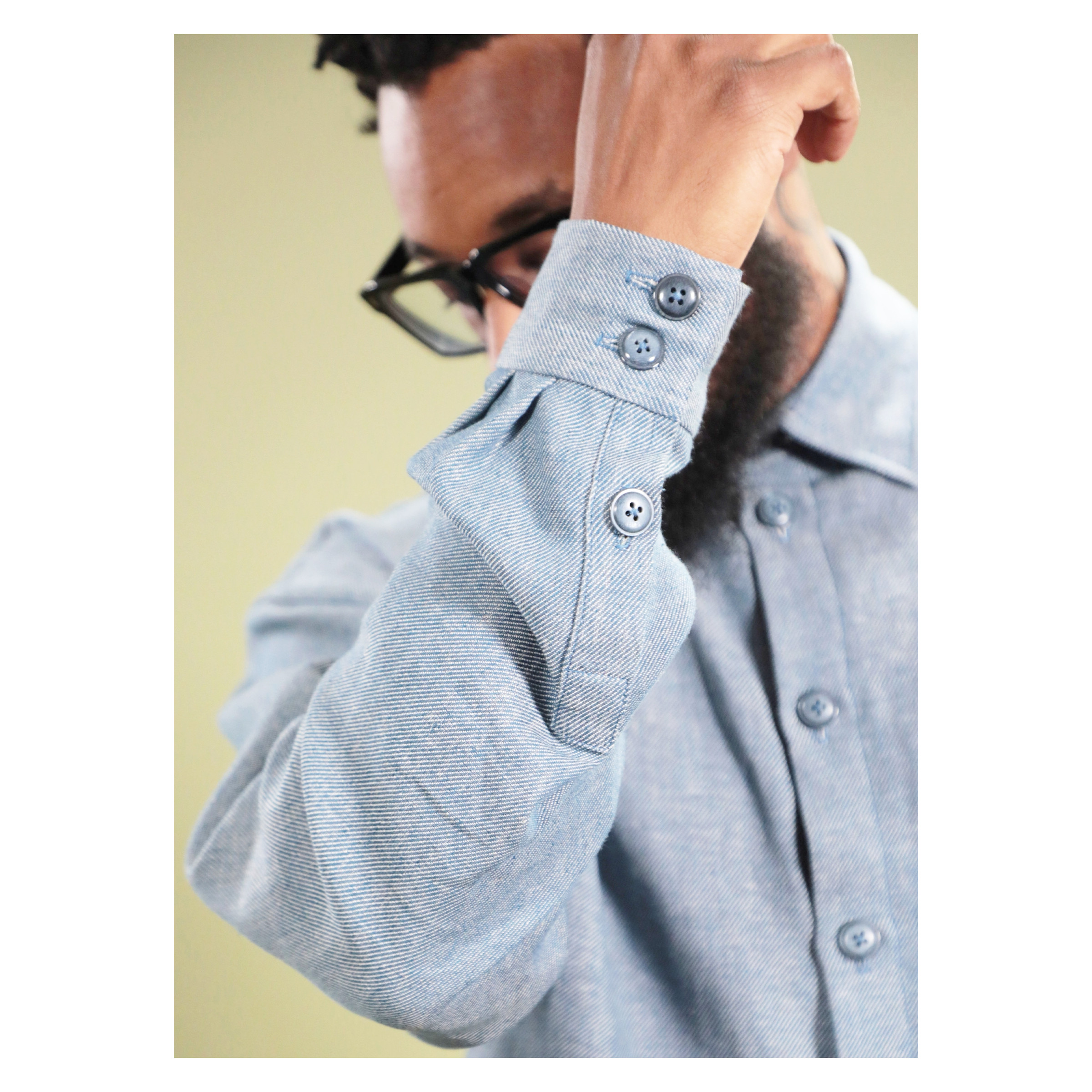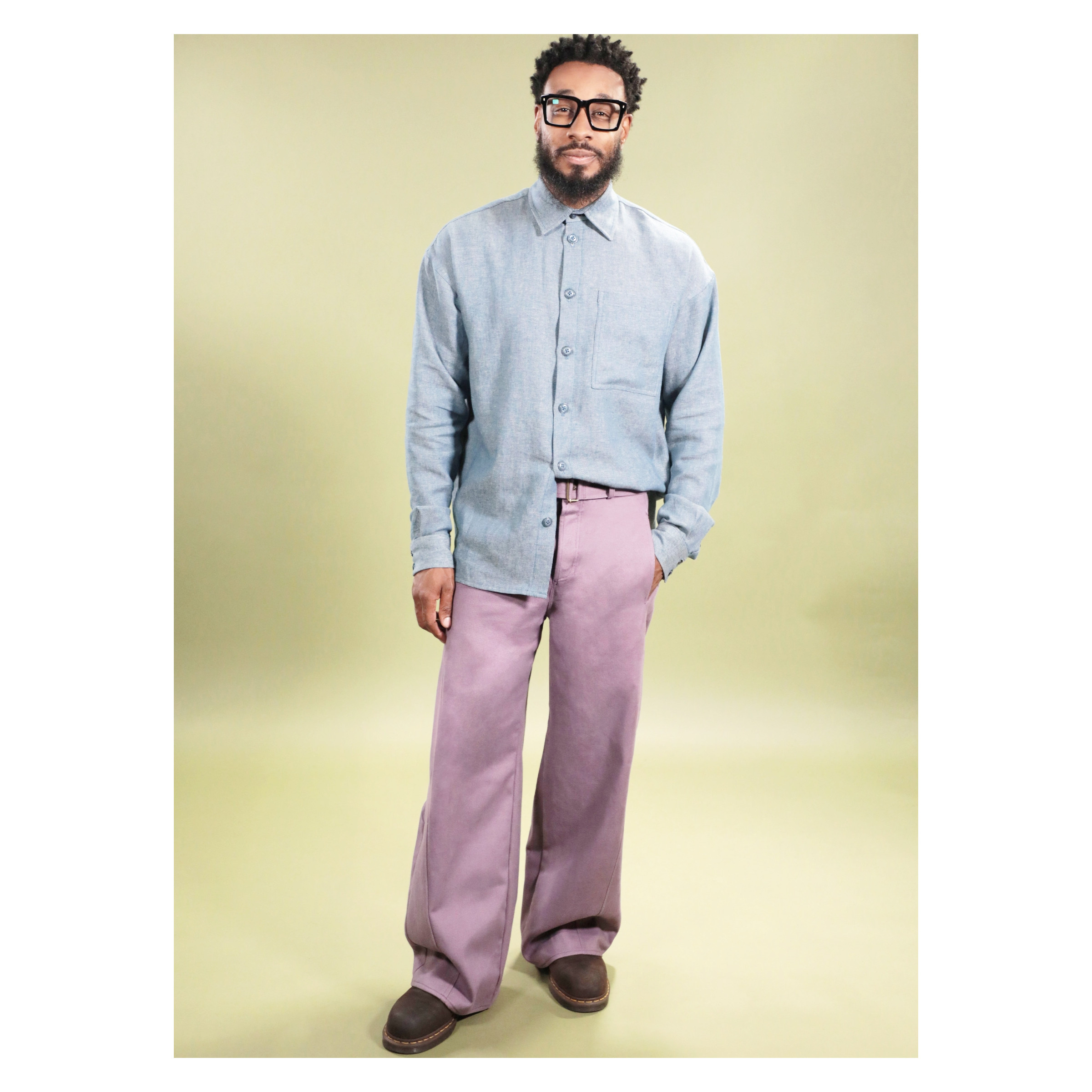 Das Hemd überzeugt durch seine klare Linienführung, einen entspannten Fit und typische Details wie Kragen, Knopfleiste und Manschetten. Die Hose ist angenehm weit geschnitten, bietet viel Bewegungsfreiheit und sitzt komfortabel am Körper. Zusammen ergibt sich ein harmonisches Outfit, das sowohl im Alltag als auch in der kreativen Modegestaltung vielfältig einsetzbar ist.