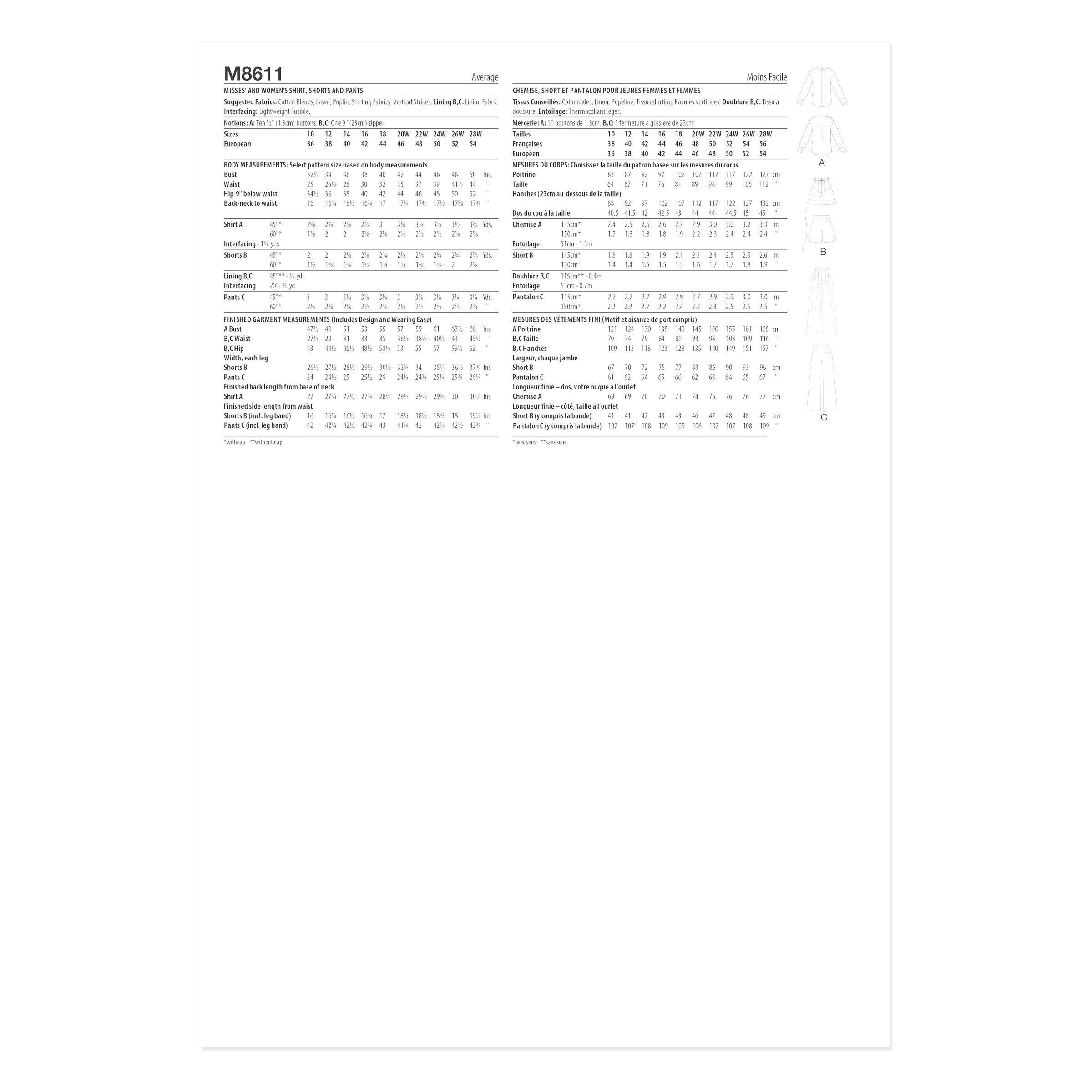 McCalls Schnittmuster M8611 – Damenset – Hemd + Hose