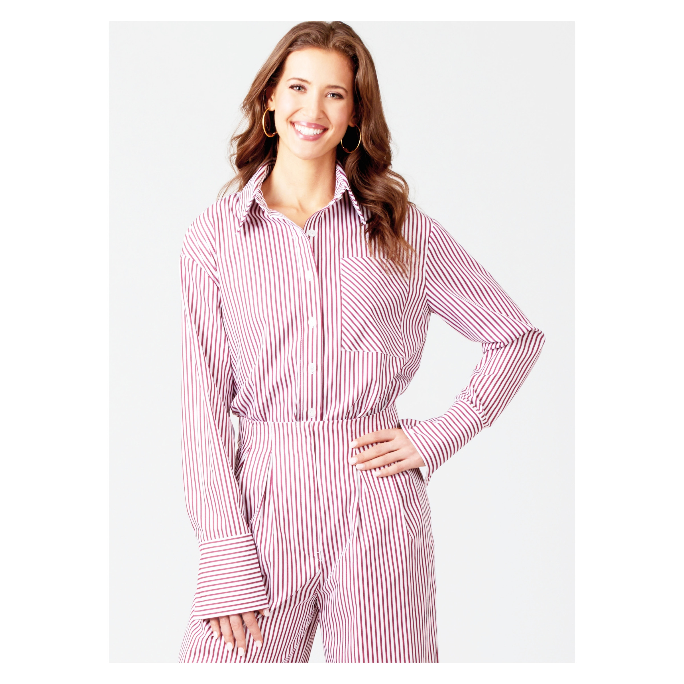 Mit dem McCall’s Schnittmuster M8611 entsteht ein vielseitiges Damenset, bestehend aus einem modernen Hemd und einer komfortablen Hose. Das Set eignet sich perfekt für lässige Freizeitlooks, den Alltag oder entspannte Homewear – je nach Stoffwahl wirkt es sportlich, chic oder besonders leicht und sommerlich.