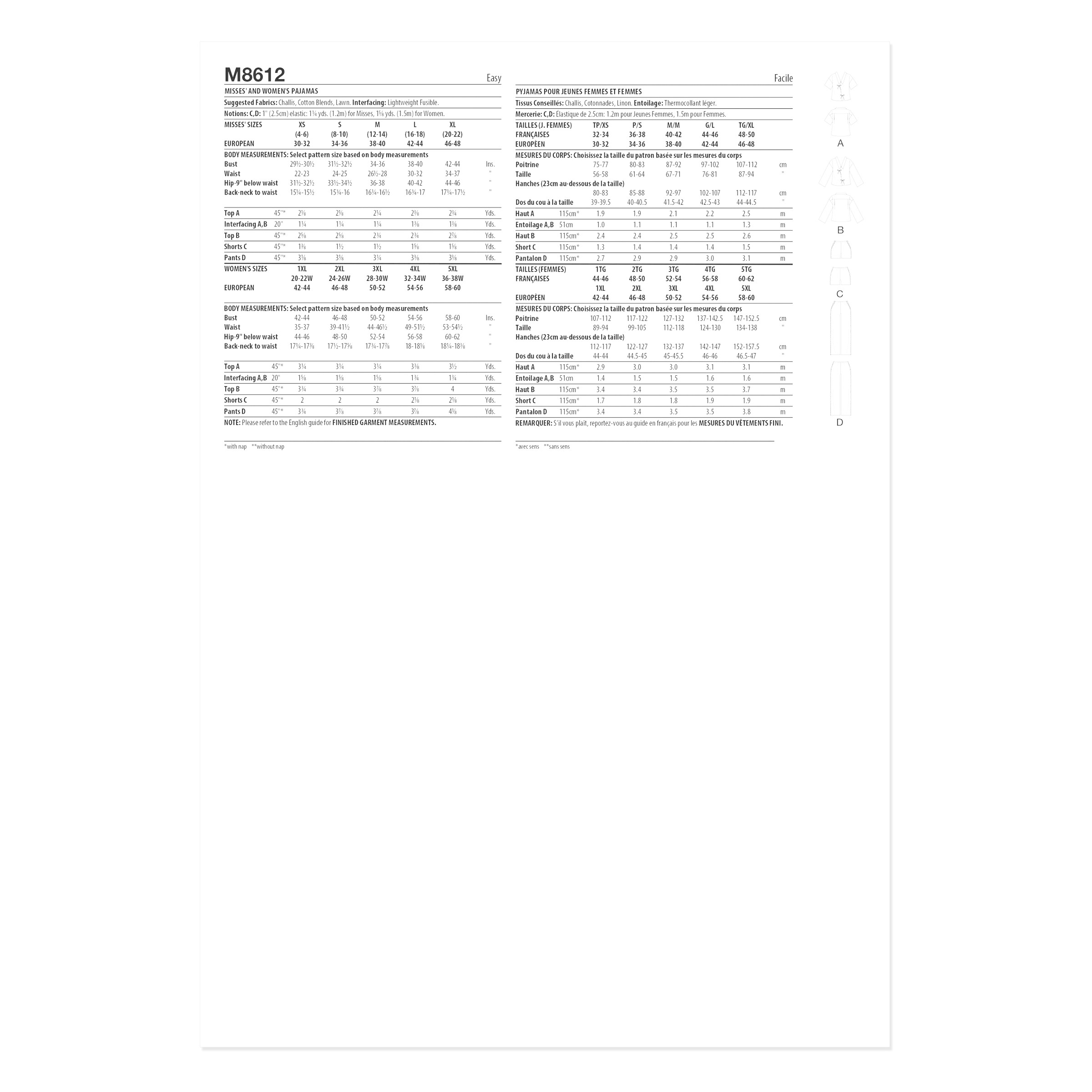 McCalls Schnittmuster M8612 – Nachtwäsche – Schlafanzug – Damen