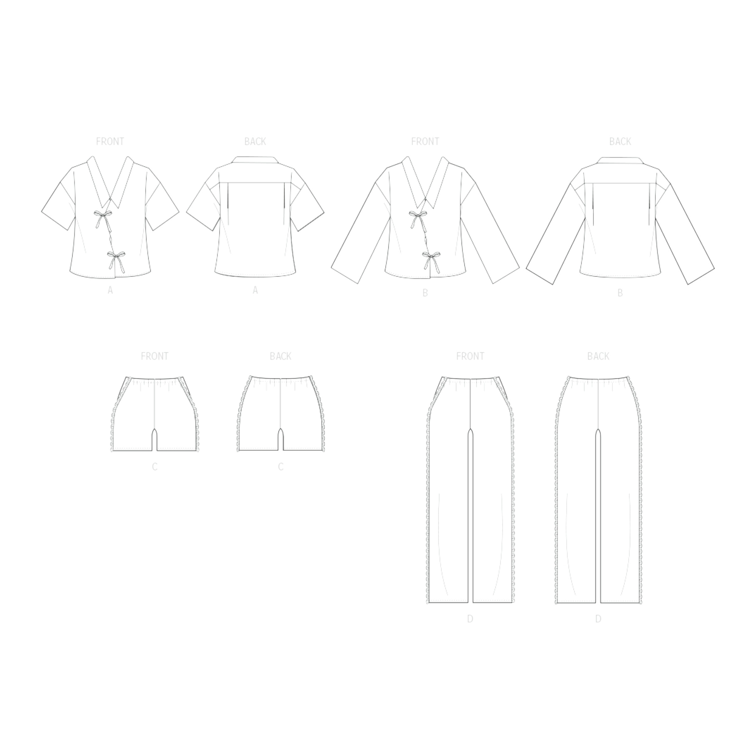 Mit dem McCall’s Schnittmuster M8612 nähst du eine bequeme und stilvolle Damen-Nachtwäsche, die durch angenehme Schnitte und vielseitige Varianten überzeugt. Das Set bietet verschiedene Oberteile und Hosenlängen, sodass du deinen Schlafanzug individuell an deine Bedürfnisse und deinen Lieblingsstil anpassen kannst.