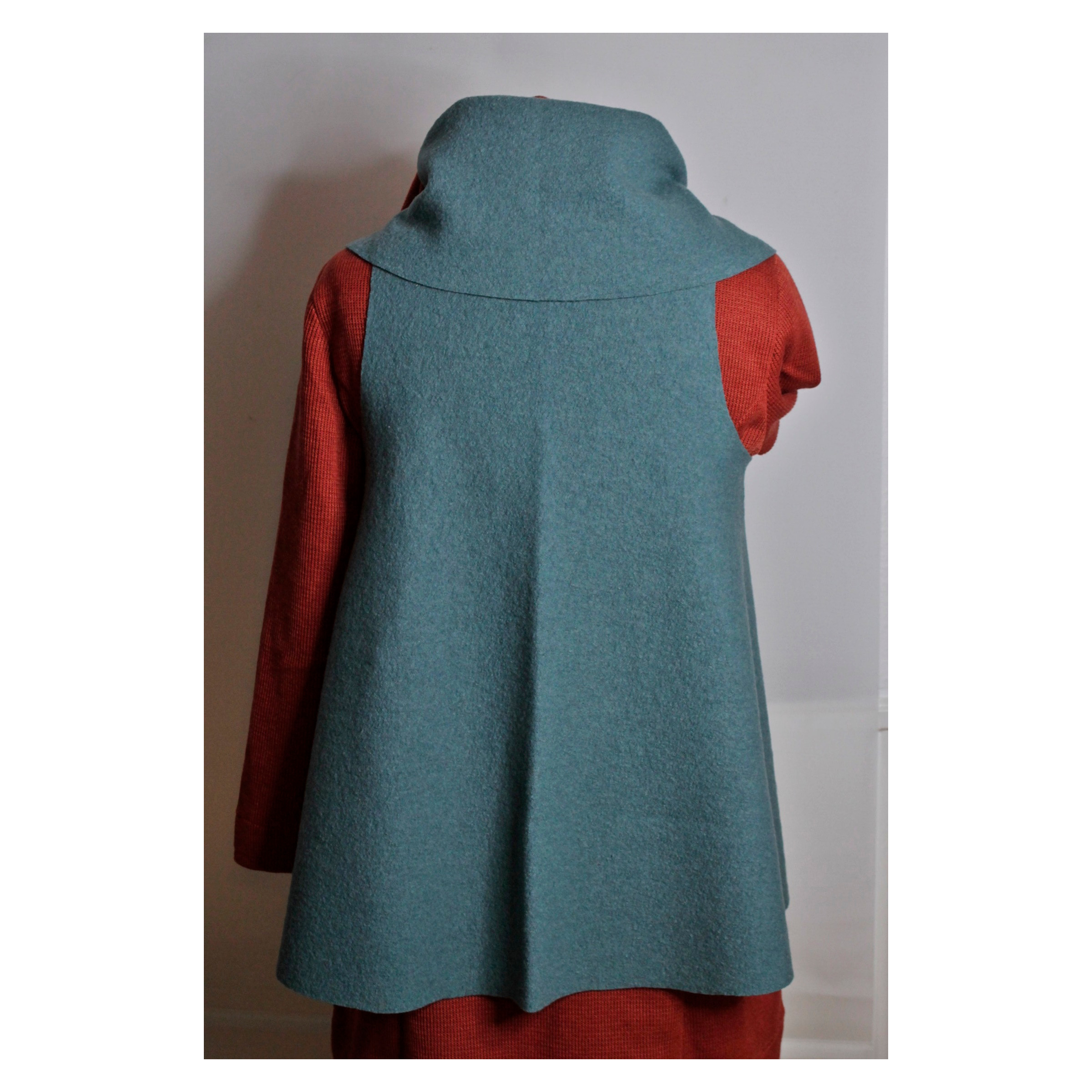 Oversize Weste – Walkloden – Wollweste – mit Applikation – helles Petrol/ Terra