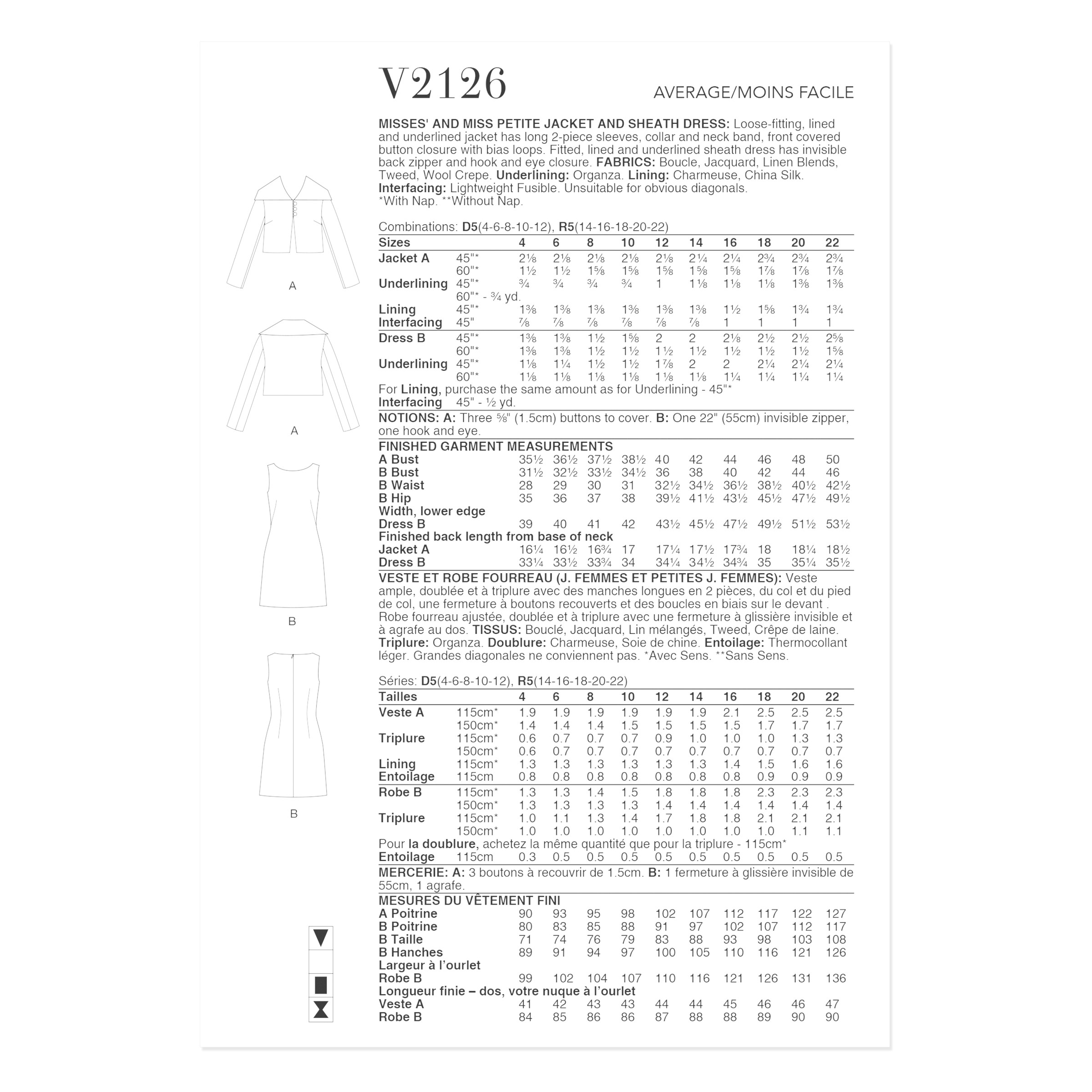 Vogue Schnittmuster – V2126 – Etuikleid mit kurzer Jacke