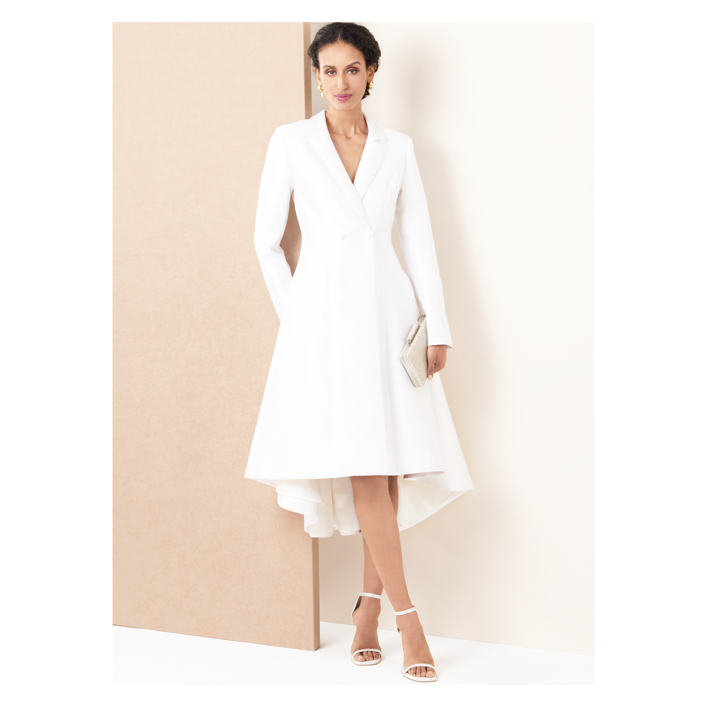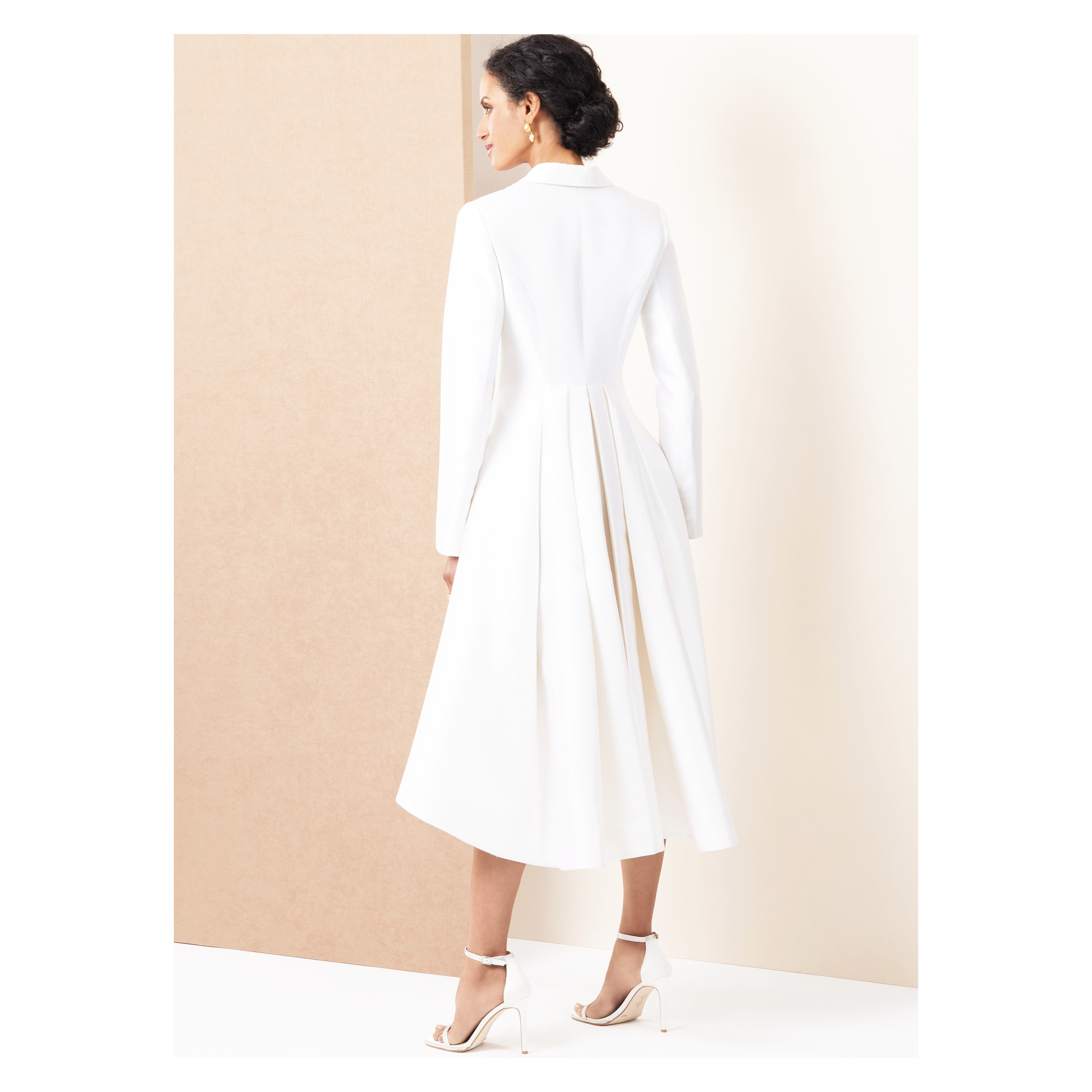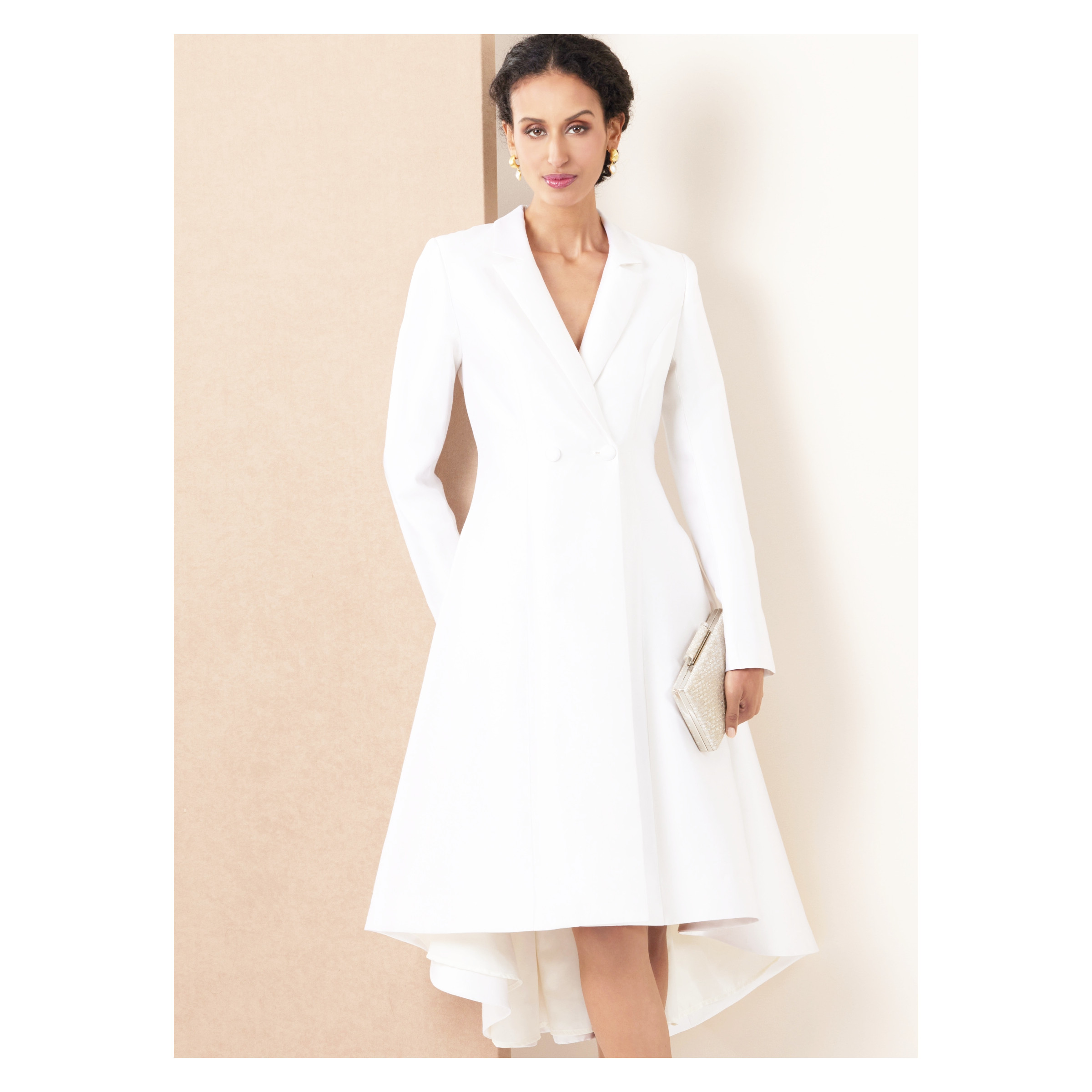 Mit dem Vogue Schnittmuster V2125 – ausgefallenes, doppelreihiges Mantelkleid nähst Du Dir ein außergewöhnliches Kleid mit starkem Designcharakter. Die doppelreihige Knopfleiste verleiht dem Mantelkleid eine elegante, fast architektonische Optik und macht es zu einem echten Statement-Piece für modebewusste Looks.