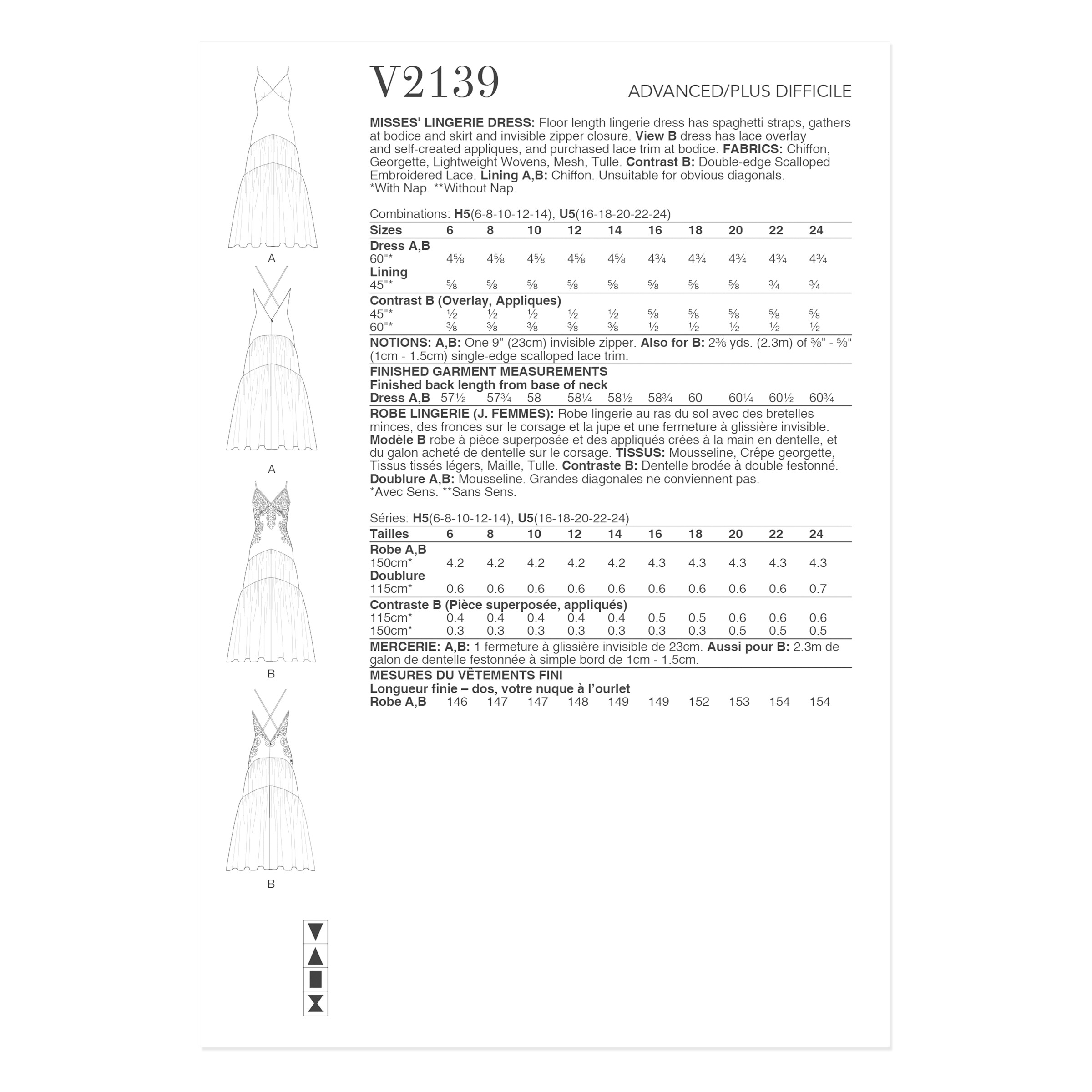Vogue Schnittmuster V2139 – extravagante Nachtwäsche für Damen